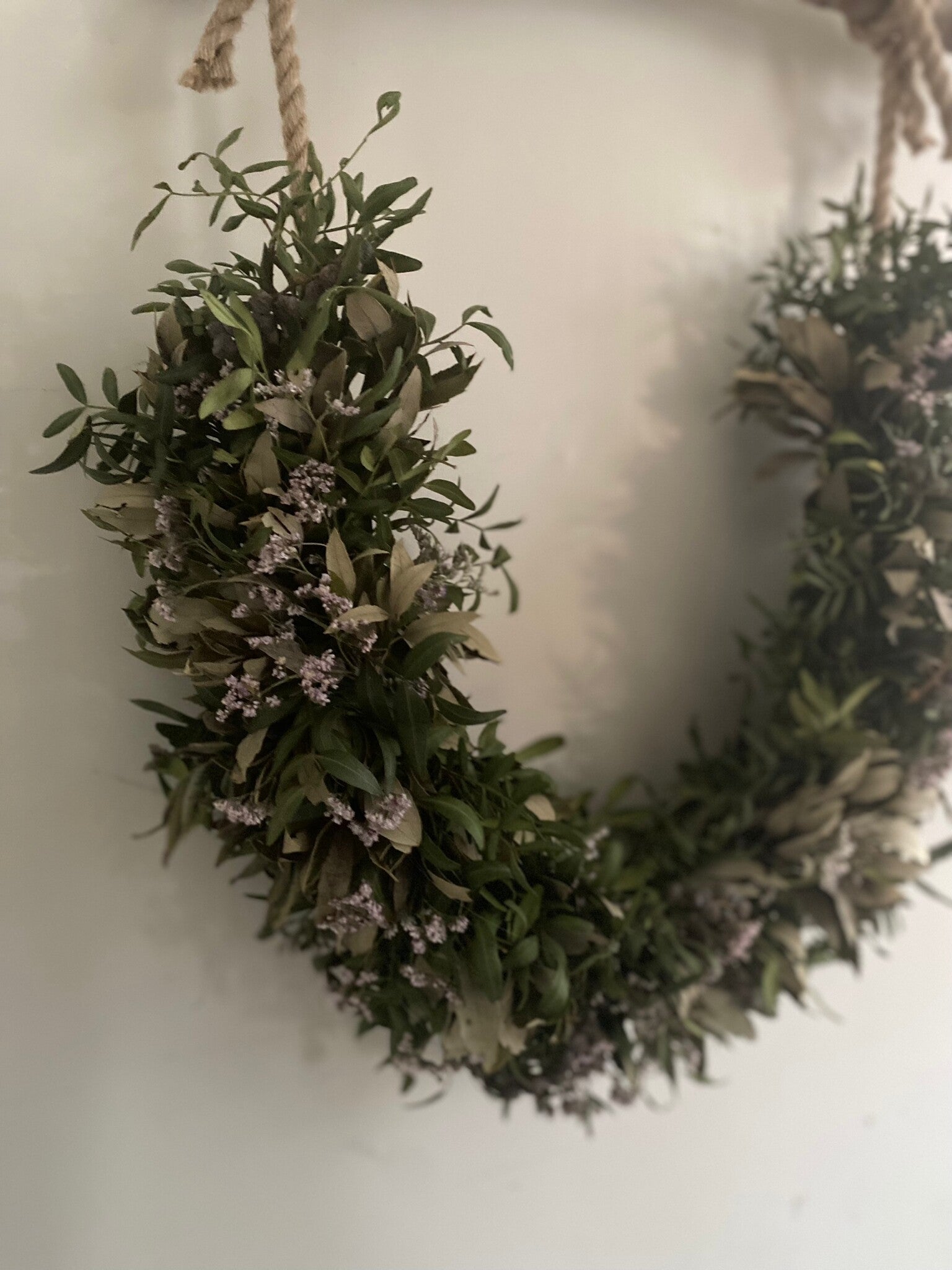 Leuke deur/muur/kast hanger. Opgemaakt met olijf of steeneik en andere groensoorten die mooi indrogen.