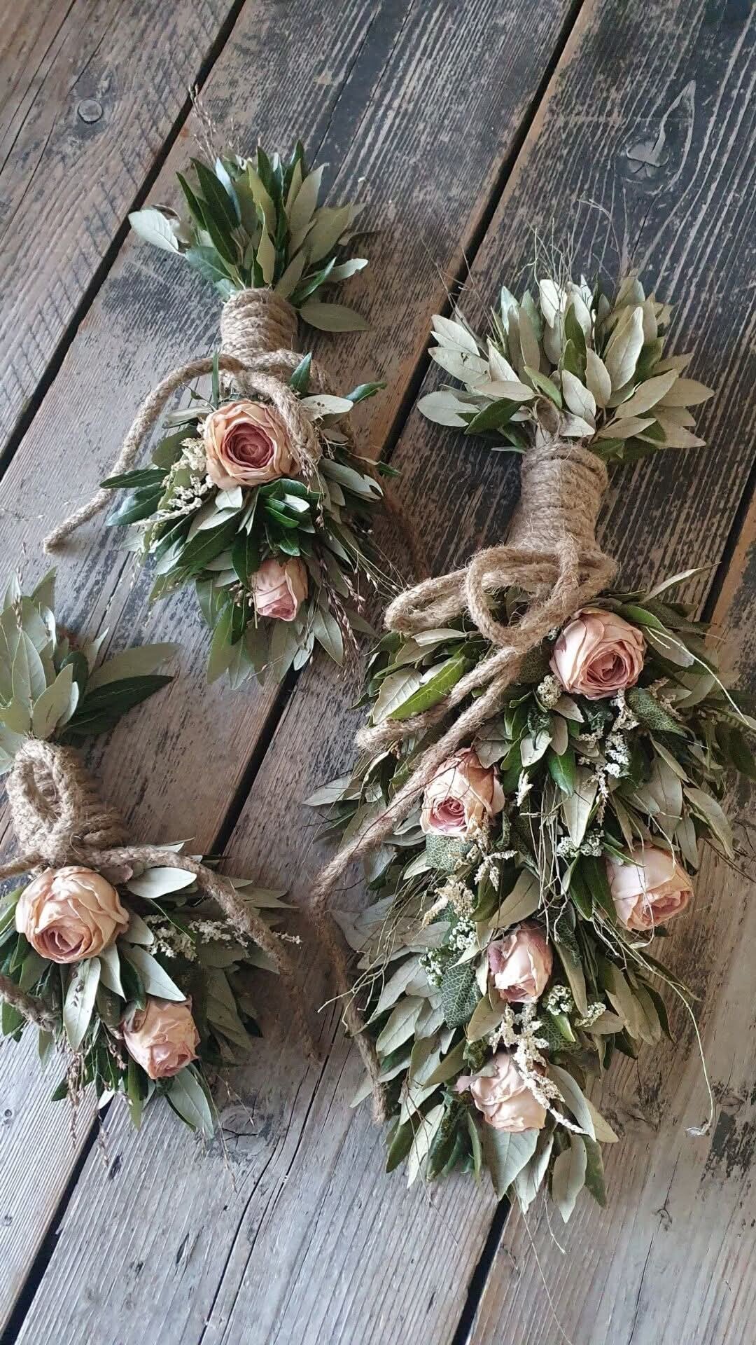 gemaakt van gedroogde materialen en afgewerkt met mooie kunstrozen